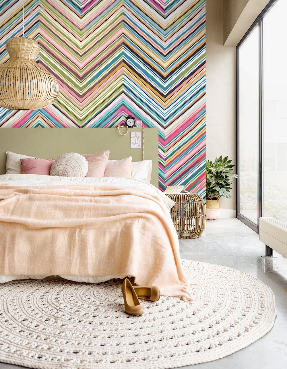 Geometrická obrazová tapeta, barevný cik cak vzor 377212, 186x280cm, Stripes+, Eijffinger