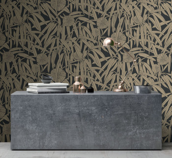 Elegantní vliesová tapeta se vzorem listů a květů.