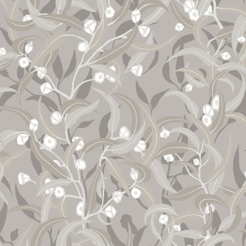 Elegantní vliesová tapeta s malovanými větvičkami, listy a kvítky.