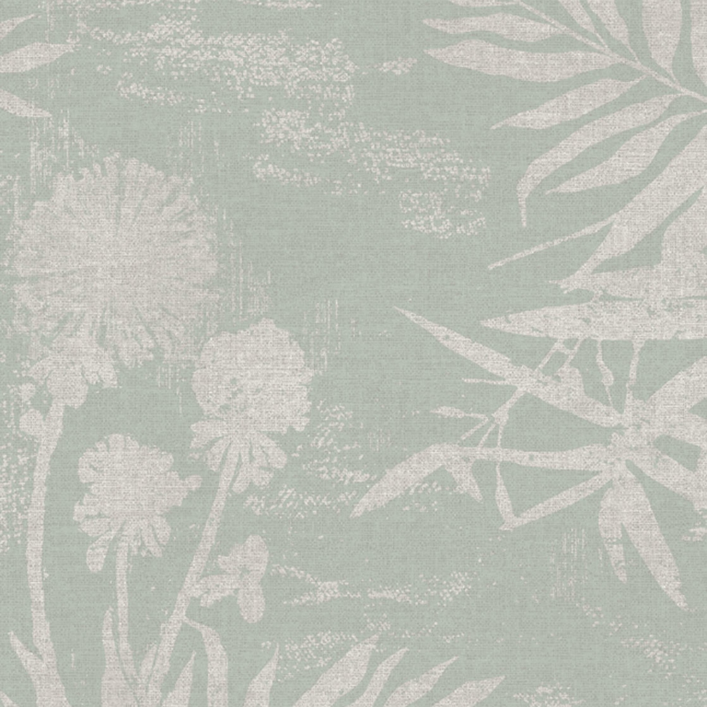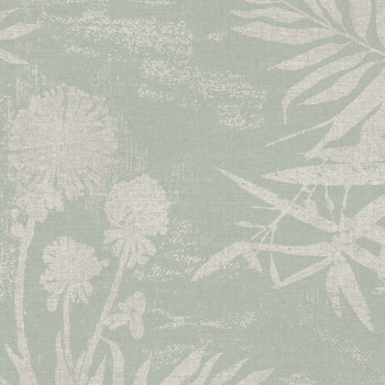 Šedo-béžové rostlinné motivy na hladké matné vliesové tapeta v zelených odstínech.