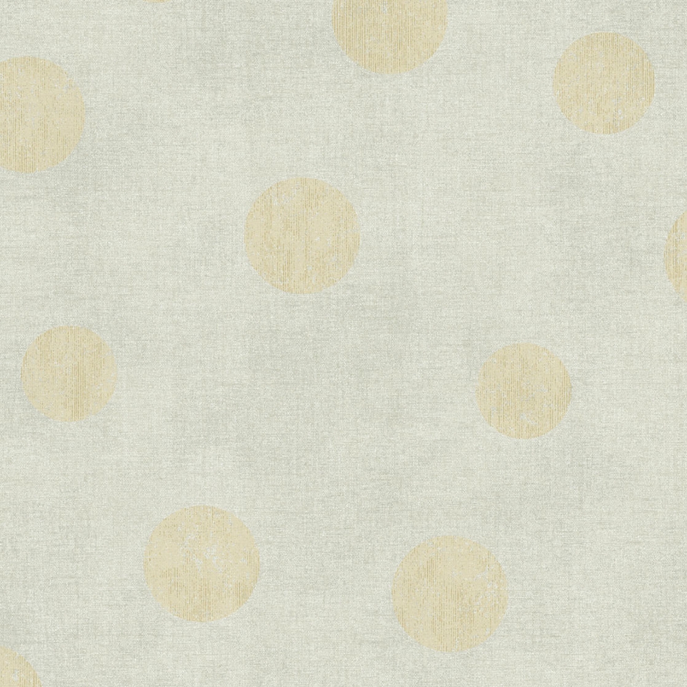 Puntík vnese do vašeho interieru nový rozměr a originalitu. Nepravidelné zlaté puntíky na šedo-zelené vliesové tapetě na zeď