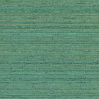 Žíhaná zeleno-zlatá vliesová tapeta s látkovou strukturou.