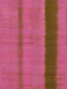 Metalické růžové odstíny na vliesové obrazové tapetě. Hnědý pruh, zlaté detaily.