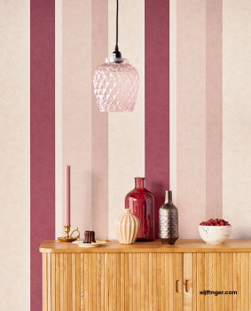 Pruhy ve vínových, růžových a krémových odstínech na hladké vliesové tapetě na zeď.