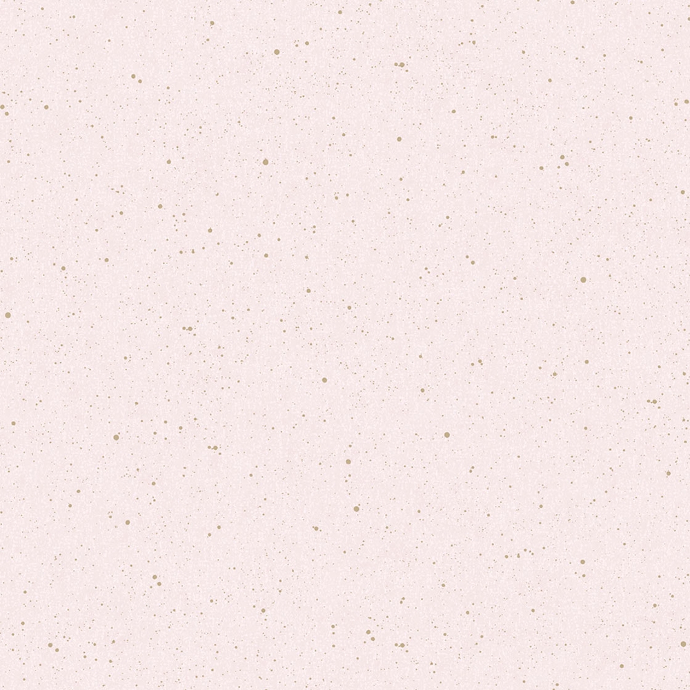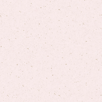 Růžová vliesová tapeta se zlatými nepravidelnými tečkami.
