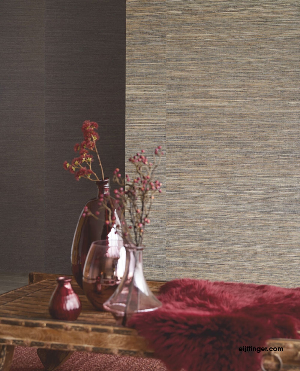 Přirozené nerovnosti v textuře a variacích přispívají k charakteristice a dekorativnímu kouzlu těchto tapet. Trávová tkaniva vyrobená s nádechem Dálného východu a také detaily naplněné třpytivým stříbrem a zlatem. Stylový korek a živý sisal. Pozadí s lesklou povrchovou úpravou přidává špetku dynamiky a dotek přitažlivosti. Zemní tóny v kombinaci s lesknoucí mědí, ale také botanická zeleň, oprýskaná lila, teplá červená a okrová, zdobená přírodní a ecru, odstíny z mořské modré a stylové stříbrné šedé, to vše nabízí tato kolekce tapet. Nadčasová elegance, trvalá, hmatatelná a krásně vytvořená. Přivítejte přírodu a autenticitu ve vašem interiéru s přírodními tapetami.