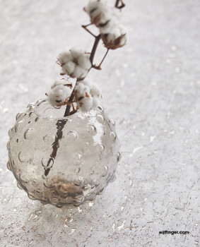 Přírodní korek v šedo-stříbrné barvě na zlato-stříbrném podkladu.