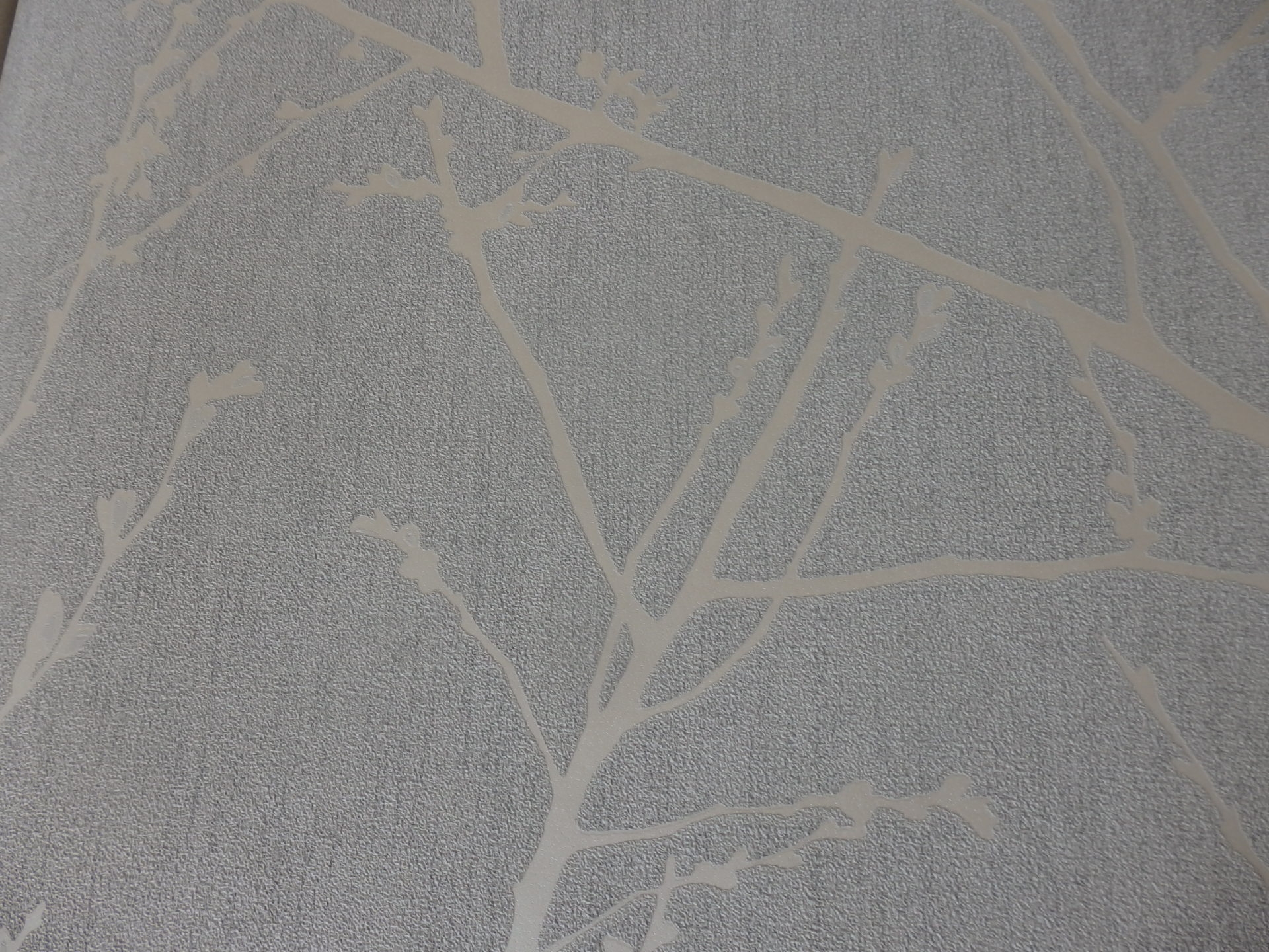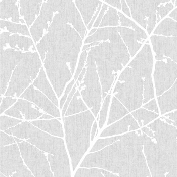 Rostlinné motivy na tapetě zútulní a zpříjemní každý interiér. Metalický perlový design větví stromů na šedém žíhaném podkladu s jemnou látkovou strukturou. Vliesová tapeta - skvělý výběr do ložnice, nebo obývacího pokoje.