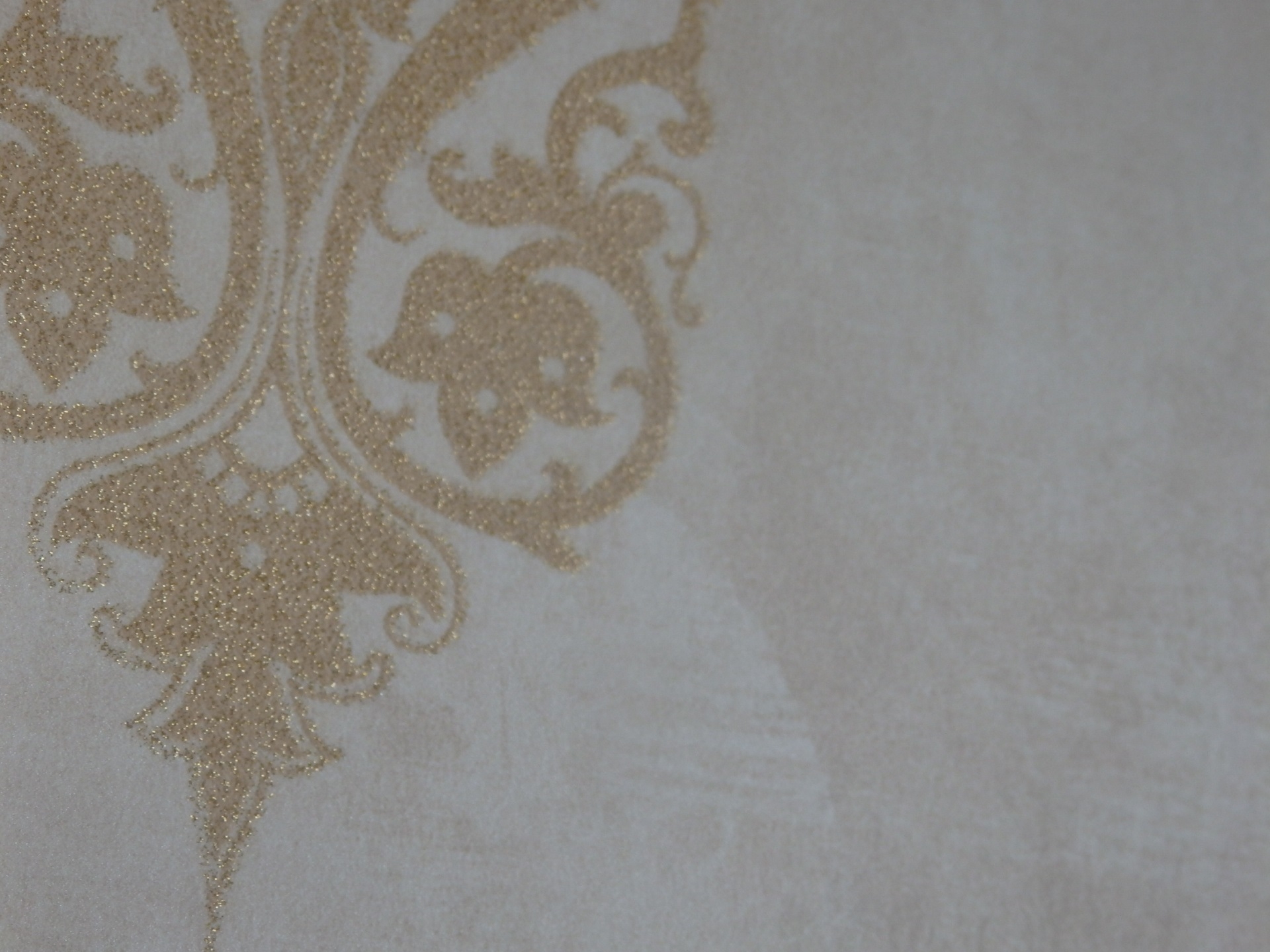 Metalické efekty dodají vašim stěnám luxus a styl. Luxusní tapeta ve vintage stylu. Vzor tvořený ze zlatých třpytek - tapeta mramorovaná pololesklá krémovo-béžová.