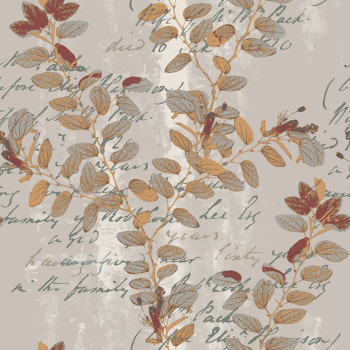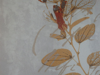 Přírodní a rostlinné motivy zpříjemní a zútulní každý interier. Design větviček v šedých a okrových odstínech, podklad šedý, pololesklý, mramorovaný, béžové nápisy.