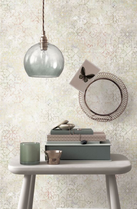 Metalické efekty dodají vašim stěnám luxus a styl. Luxusní tapeta ve vintage stylu. Metalické zlaté, mírně setřené, vzory na podkladu v odstínech modré, šedé a krémové.