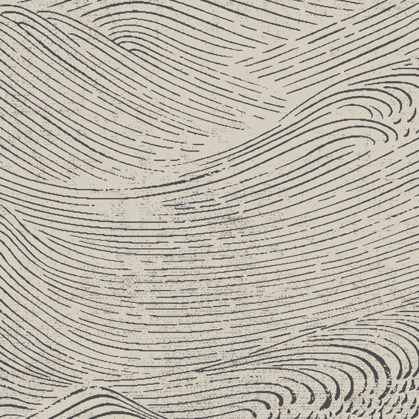 Originální zvlněné linky dodají interiéru styl. Linie v šedo-černých odstínech na metalické béžové vliesové tapetě na zeď.