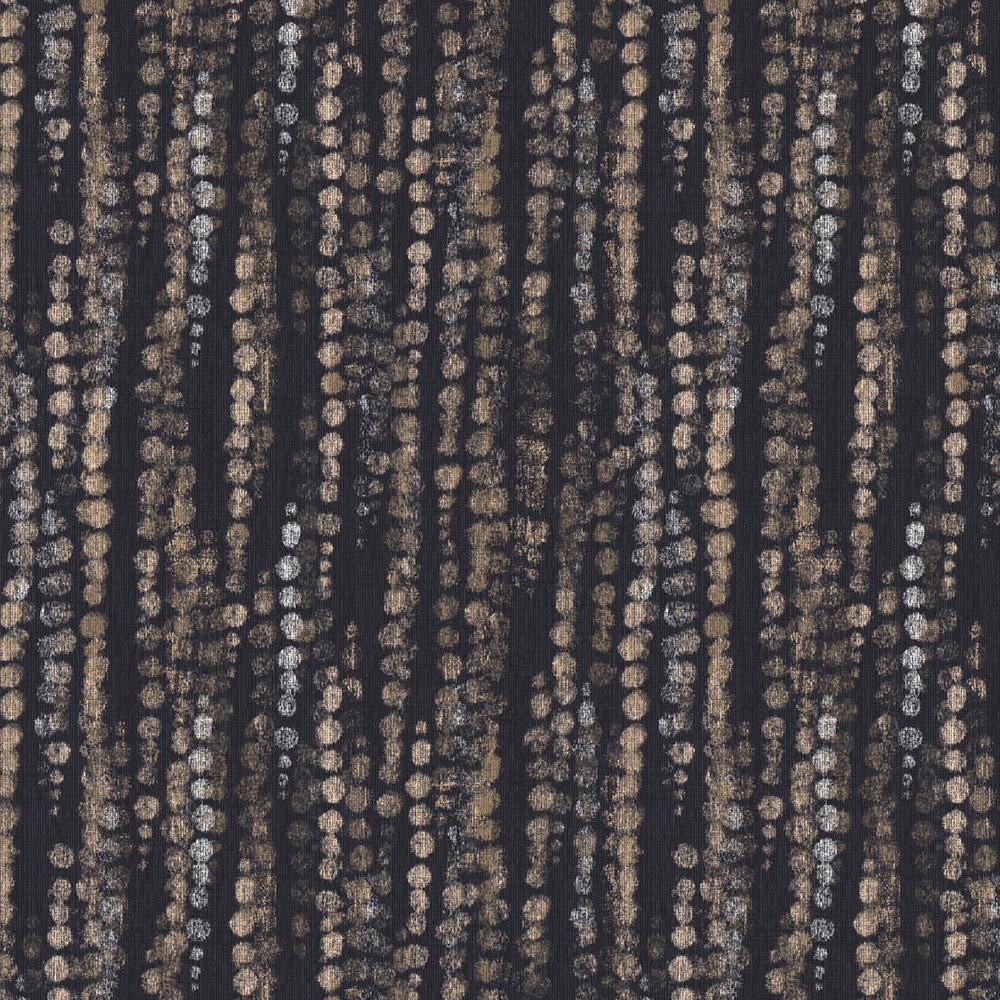 Zvolte netradiční vzor a dejte stěnám styl. Abstraktní puntíky ve zlatých, hnědých a béžových odstínech na černé vliesové tapetě na zeď.