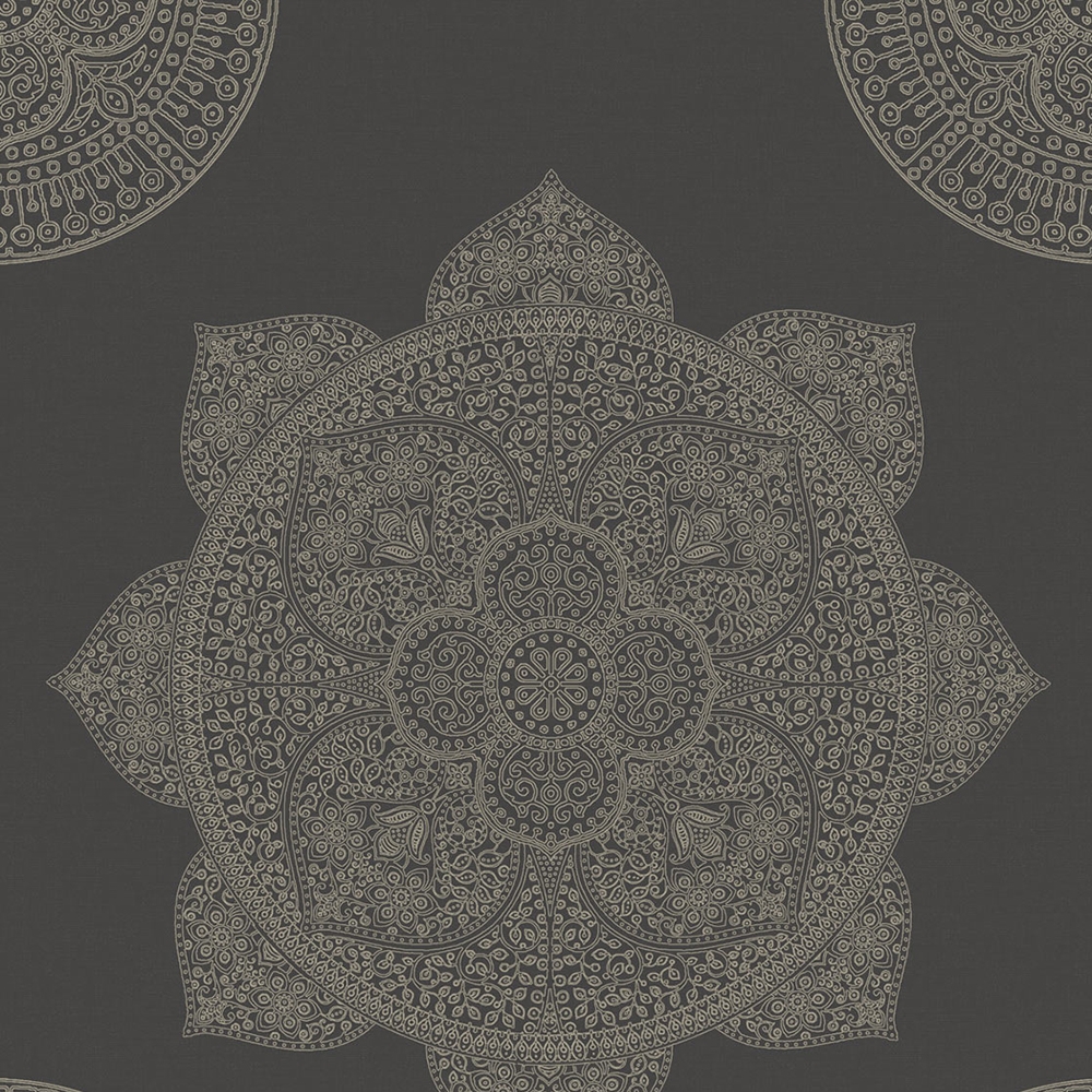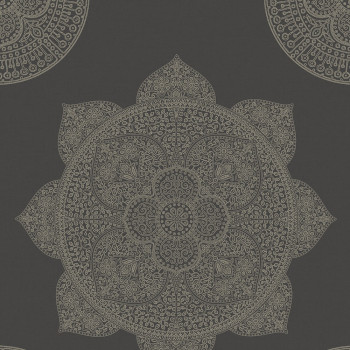 Motivy mandal vnesou do vašeho interiéru harmonii a uvolnění. Stříbrné obrysy mandal na hladkém černém podkladu připomínající textilní strukturu.