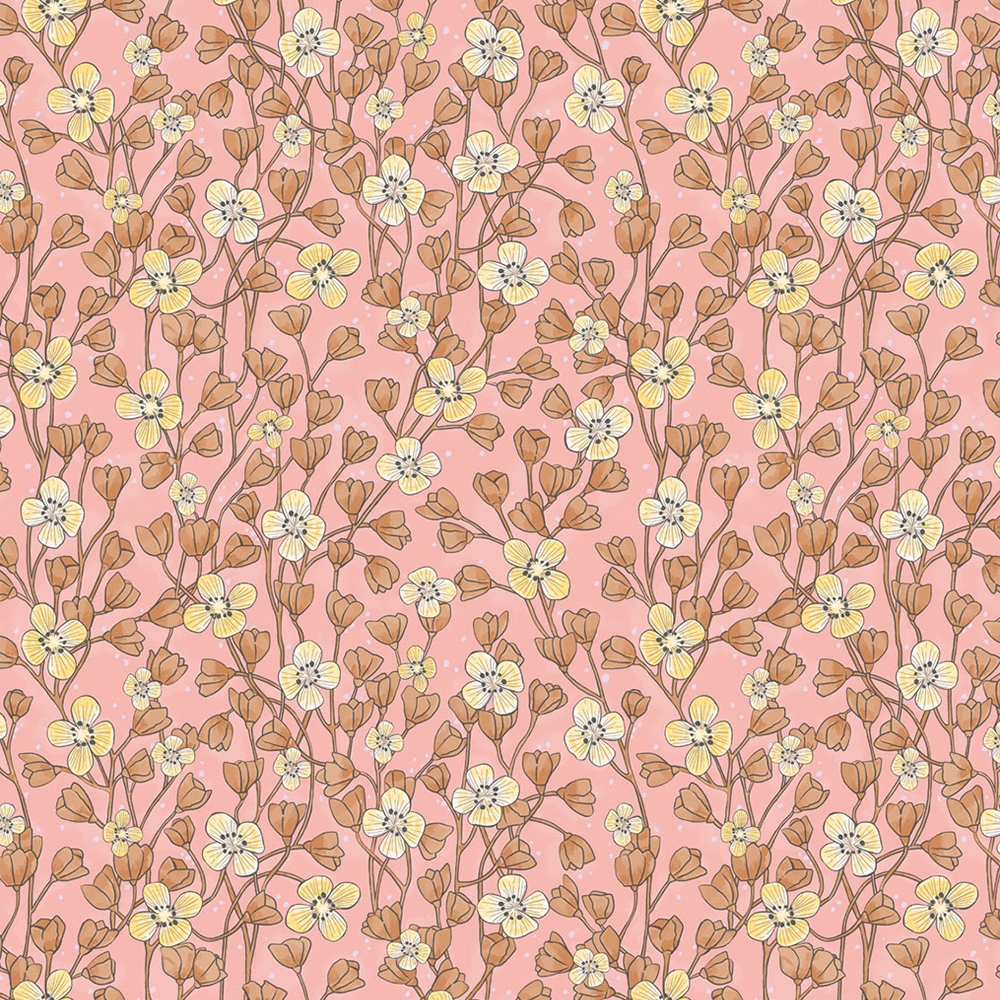 • základní barvy: růžový podklad, vzor cihlová, okrová, drobné metalické tečky