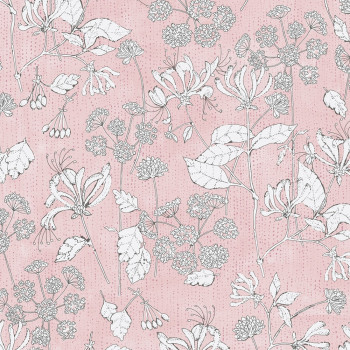 Přírodní a rostlinné motivy zpříjemní a zútulní každý interier. Decentní jemně plastický rostlinný design na růžovém mramorovaném podkladu s drobnými tečkami.