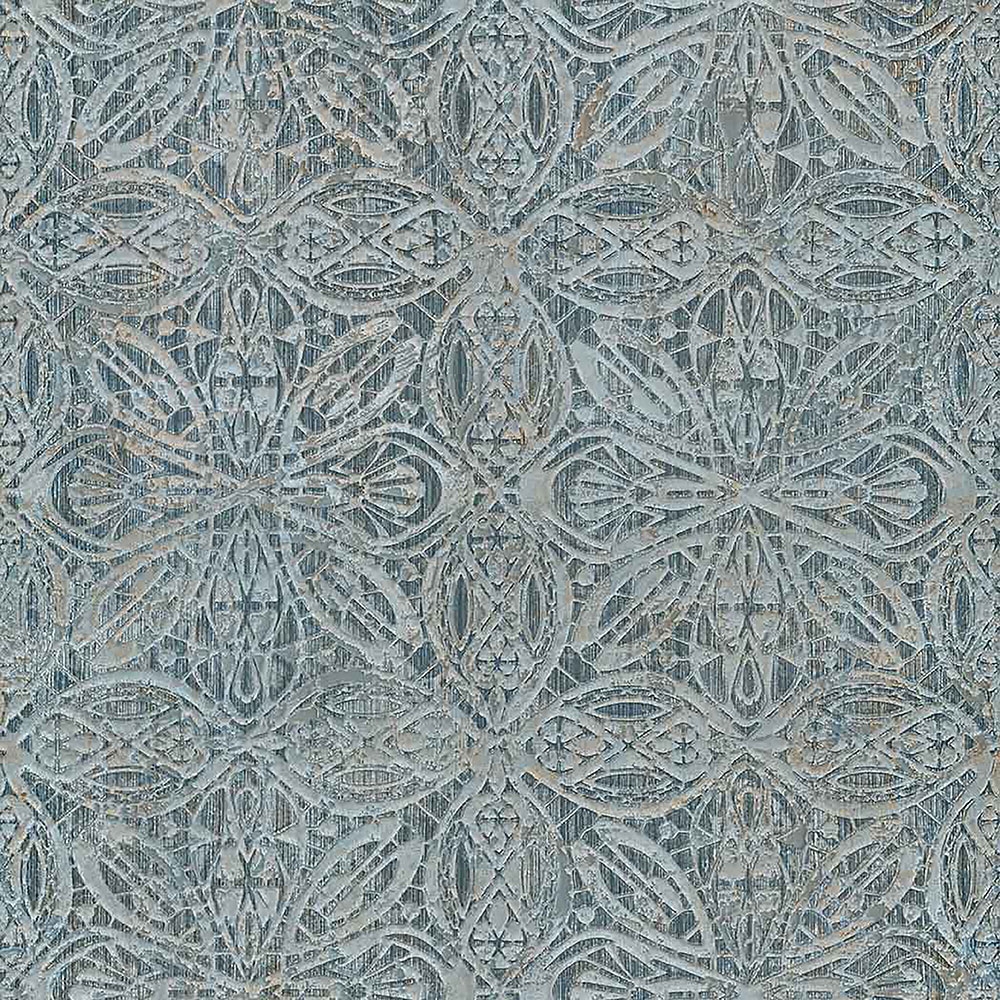 S metalickými odlesky a výraznými texturami vnesete do vašeho interiéru luxus a styl. Plastický ornamentální zámecký vzor v odstínech metalické modro-zelené s hnědo-zlatým žíháním. Snadno nakombinujete se souvisejícími vzory.