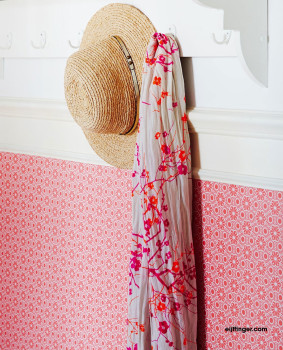 • základní barvy: pololesklý tmavě růžový podklad, vzor bledě růžový, jemně plastický
