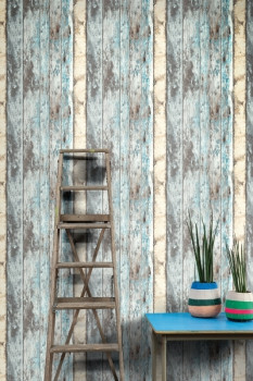 Dřevo je přírodní materiál, který zútulní a zpříjemná každý interiér. Efekt oprýskaného nátěru na dřevěných palubkách.