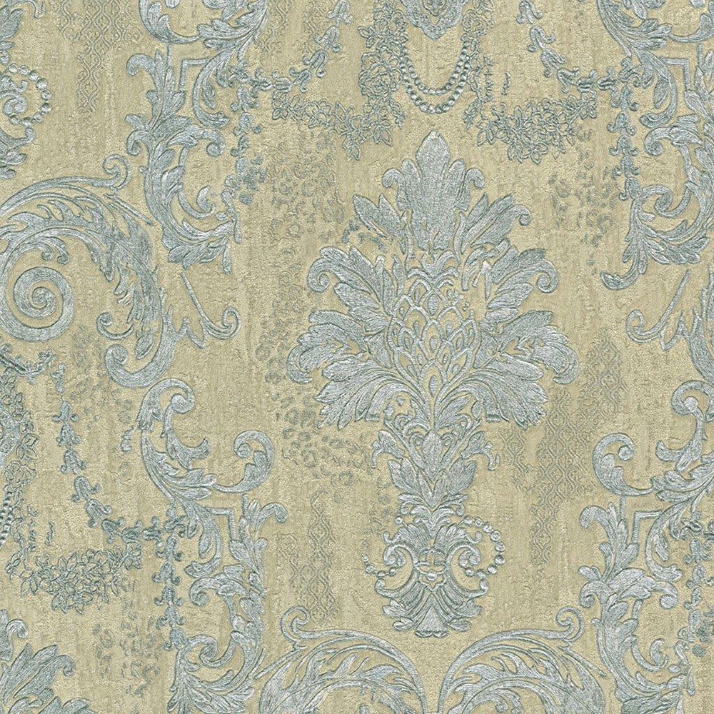 Šíře role 1,06m. Vliesová tapeta s vinylovým povrchem. Design tapety - jemně plastická, historická štuková omítka různých struktur v odstínech béžové se zlatavým pololeskem, bohatý šedo-stříbrný zámecký vzor s patinou. Snadno zkombinujete se souvisejícími tapetami.