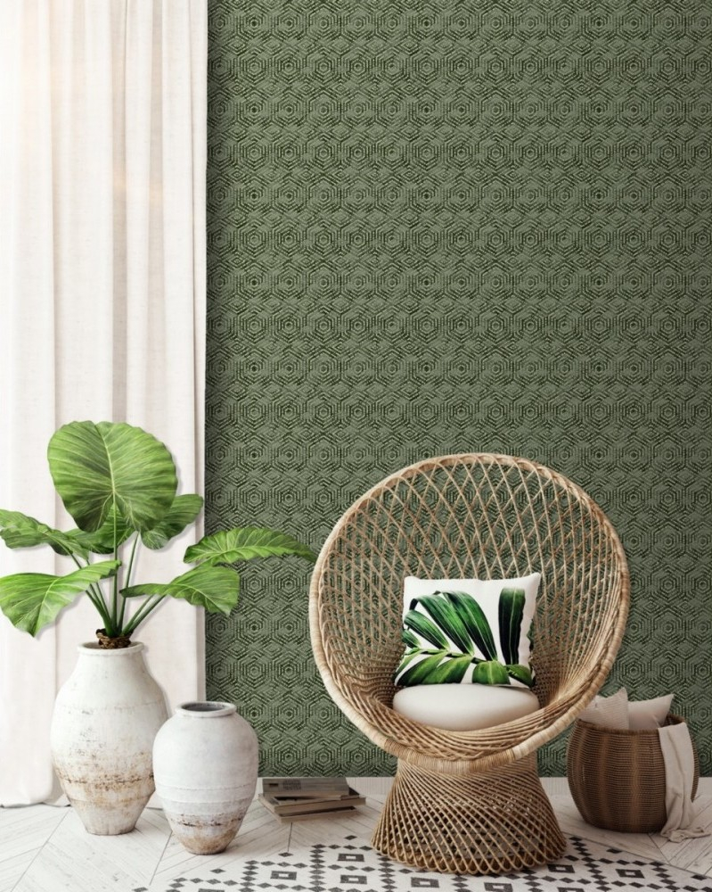 2 KS SKLADEM Vliesová tapeta na zeď s vinylovým omyvatelným povrchem. V odstínech zelené barvy, grafický motiv. Povrch tapety je hladký s mírným leskem.