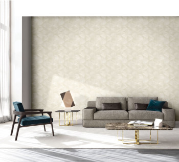 Šíře role 0,7m. Luxusní vliesová tapeta s vinylovým povrchem, design vláken hrubé textilie - v odstínech šedo-béžové, s jemnými zlatými odlesky. Střídavý směr tkaniny vytváří efektní geometricé vzory. Jemný perlový lesk. Snadno zkombinujete se souvisejícími vzory.