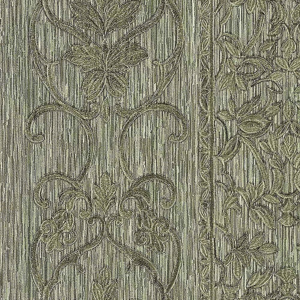 Šíře role 0,7m. Luxusní vliesová tapeta s vinylovým povrchem, výrazně plastická textilní struktura, podklad v odstínech metalické zelené, zlaté a bronzové. Barvy a lesky se mění podle dopadu světle. Snadno zkombinujete se souvisejícími vzory.
