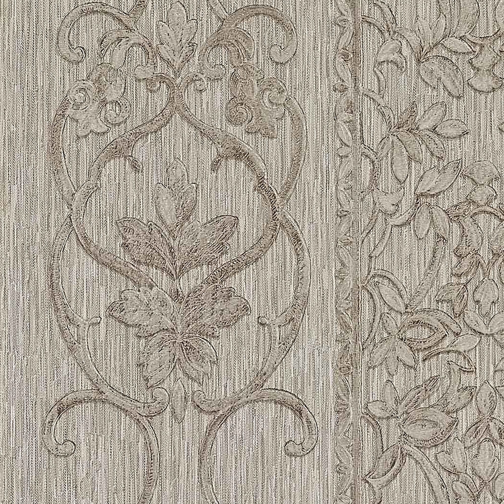 Šíře role 0,7m. Luxusní vliesová tapeta s vinylovým povrchem, výrazně plastická textilní struktura, podklad v odstínech metalické šedo-béžové. Barvy a lesky se mění podle dopadu světle. Snadno zkombinujete se souvisejícími vzory.