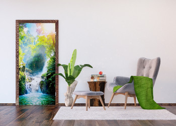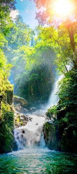 Vodopád v lese - 1 dílná vliesová fototapeta nejen na dveře. Vliesové tapety se snadno lepí, snadno strhávají.