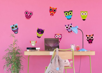 Samolepící dekorace 65 x 85 cm, Sovičky. Jednoduše a rychle změníte vzhled interiéru! Doporučujeme lepit na hladký povrch.