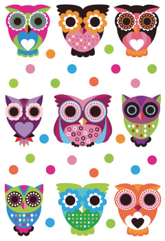 Samolepící dekorace 42,5 x 65 cm, Sovy. Jednoduše a rychle změníte vzhled interiéru! Doporučujeme lepit na hladký povrch.