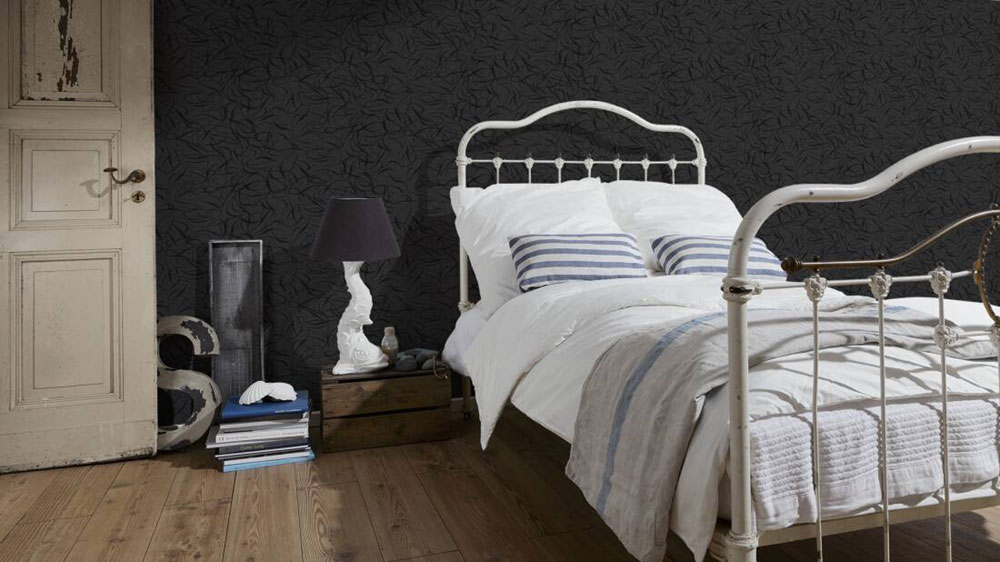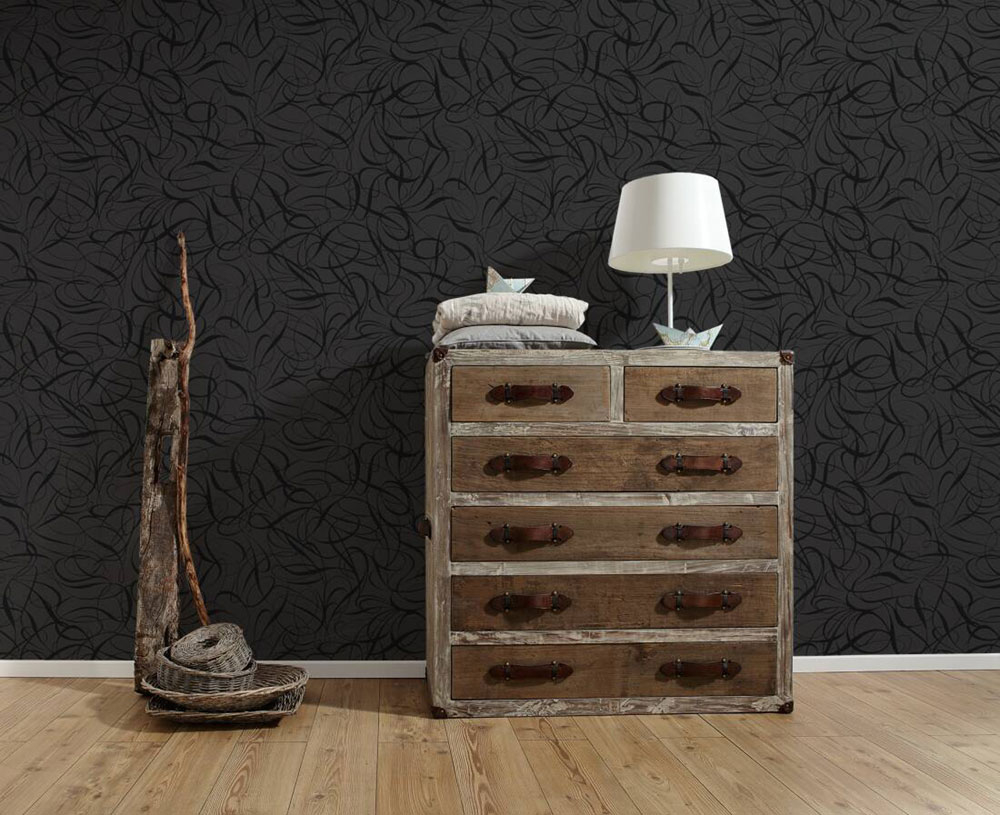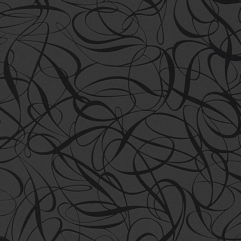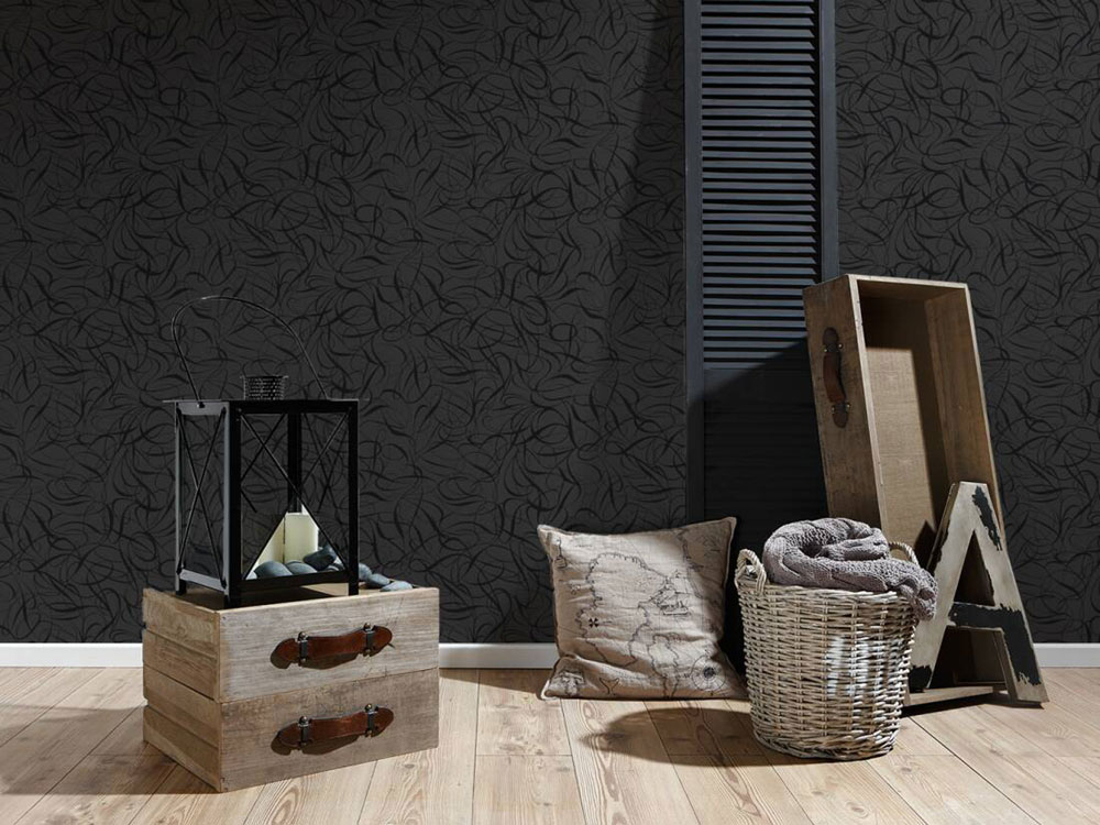 Černá vliesová tapeta s grafickými vzory. Vliesové tapety se snadno lepí, snadno strhávají.