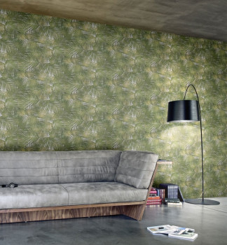 Šíře role 0,7m. S touto kolekcí vnesete do interiéru jedinečnost a eleganci. Luxusní vliesová tapeta s vinylovým povrchem. Podklad design proplétané rohože v šedo-stříbrných odstínech, listy zelené s decentním metalickým leskem. Snadno kombinovatelné se souvisejícími vzory.
