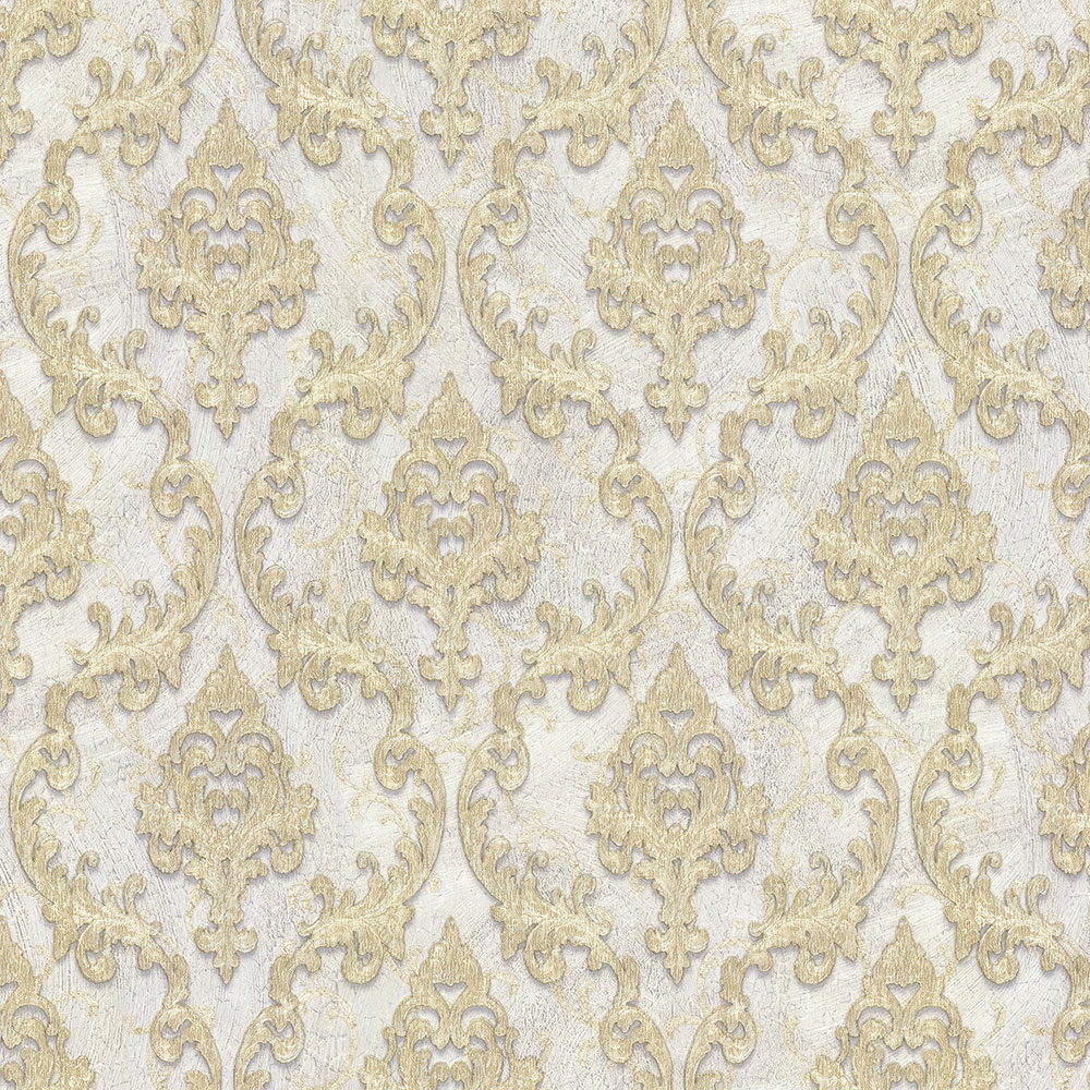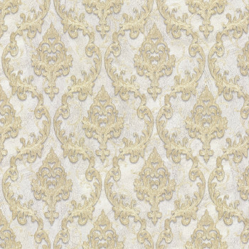 Šíře role 1,06 m. Luxusní vliesové tapety s vinylovým povrchem inspirované krásou italských historických paláců - damaškový vzor, plastická textura v odstínech krémové se zlatými odlesky, vzor s drobnými zlatými třpytkami. Snadno zkombinujete se souvisejícími tapetami.