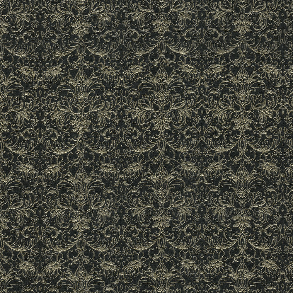 Šíře role 1,06 m. Luxusní vliesové tapety s vinylovým povrchem inspirované krásou italských historických paláců - ornamentální vzor, plastická textura, podklad černý, vzor zlatý. Snadno zkombinujete se souvisejícími tapetami.