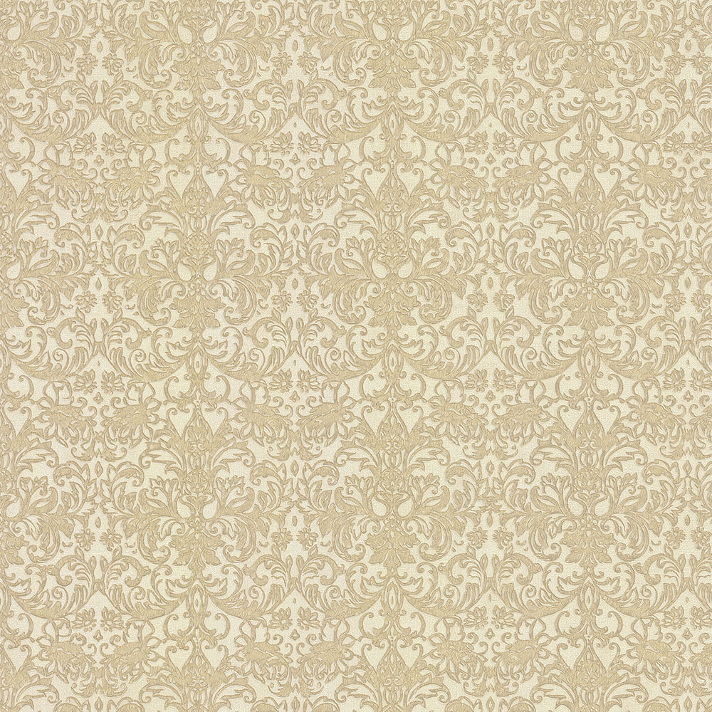 Šíře role 1,06 m. Luxusní vliesové tapety s vinylovým povrchem inspirované krásou italských historických paláců - ornamentální vzor, plastická textura v odstínech béžové, vzor zlatý. Snadno zkombinujete se souvisejícími tapetami.