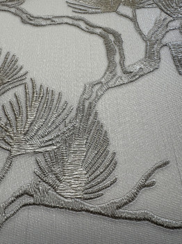 Luxusní vliesová tapeta s vinylovým povrchem, bílý podklad, šedo-stříbrné větvičky stromu.