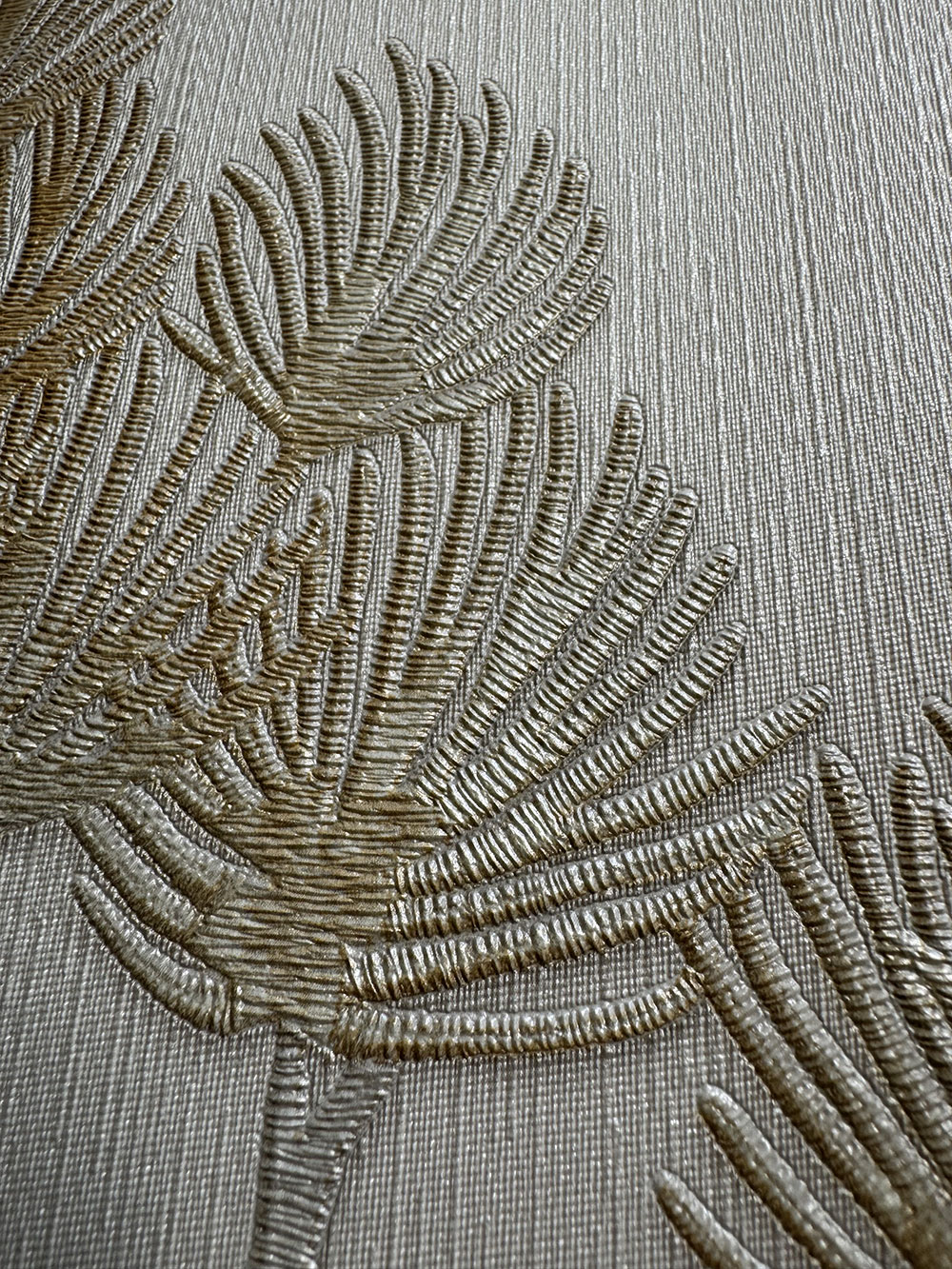 Luxusní krémová vliesová tapeta s vinylovým povrchem, pololesklé šedo-krémovo-béžové větvičky stromu.