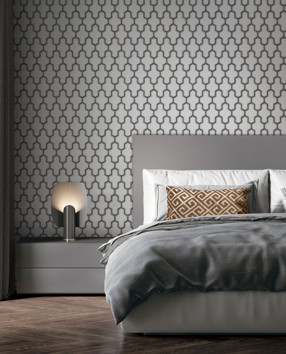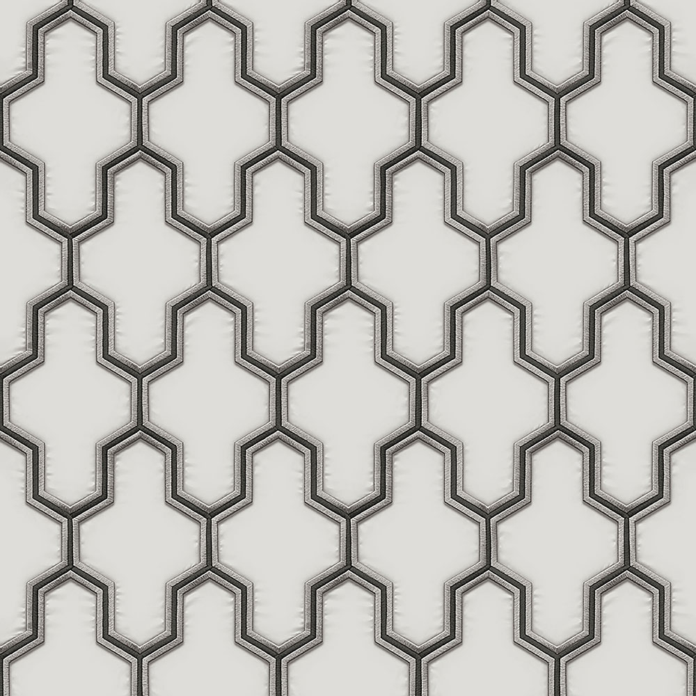 Luxusní vliesová tapeta s vinylovým povrchem, šedo-černý vyšívaný vzor ve stylu Art Deco.