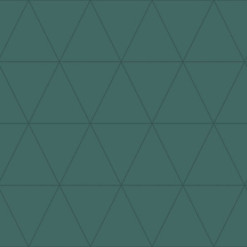 Smaragdově zelená vliesová tapeta na zeď, metalické linie tvoří trojúhelníky.