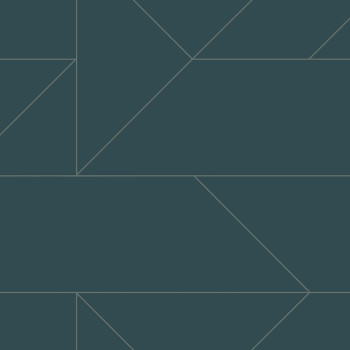 Modrá vliesová tapeta na stěnu, stříbrné metalické linie vytváří geometrické vzory.