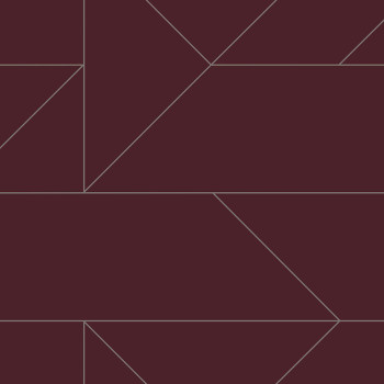 Vínová vliesová tapeta na zeď, stříbrné metalické linie tvoří geometrické vzory.