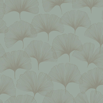 Zelená vliesová tapeta na zeď, metalické obrysy listů Ginkga.
