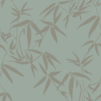 Zelená vliesová tapeta na zeď, metalické listy bambusu.
