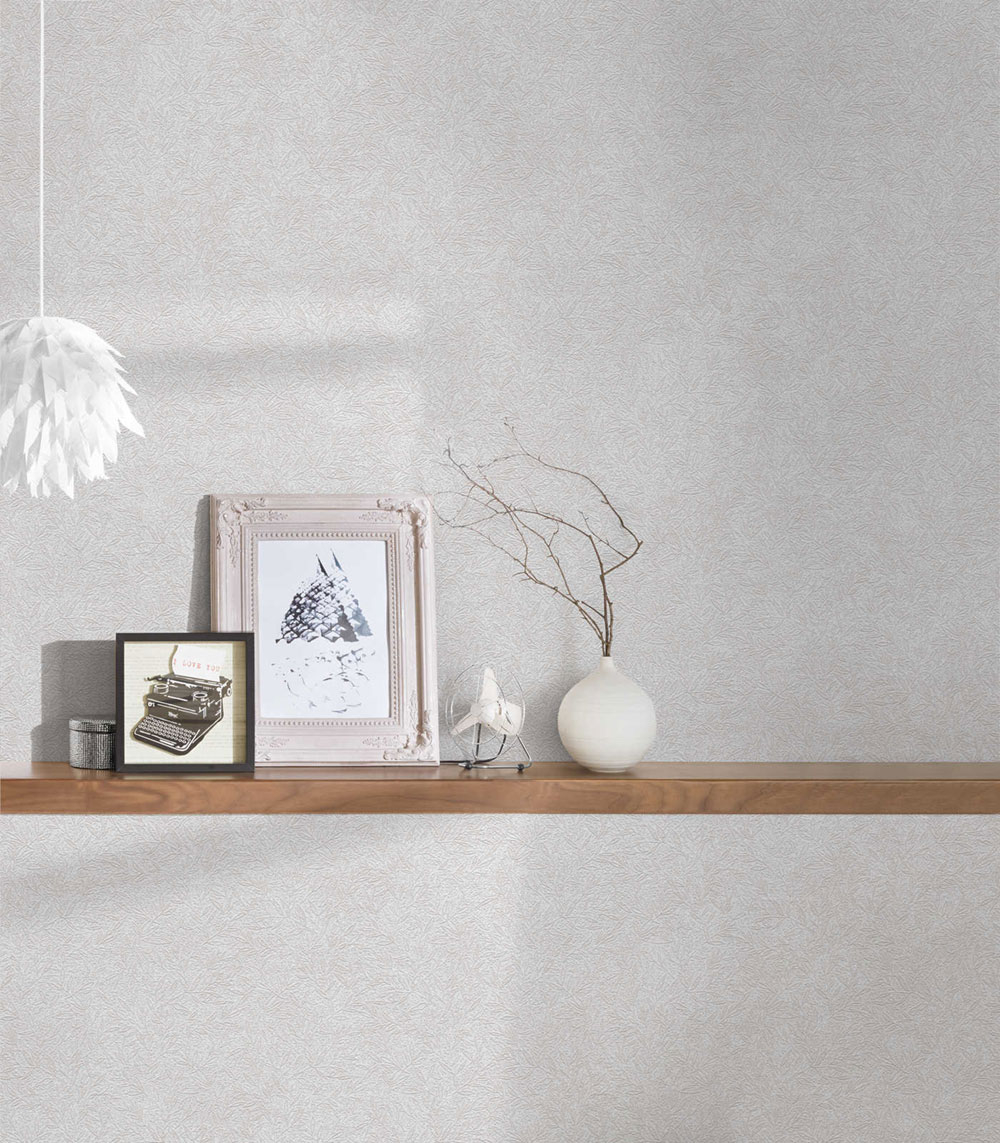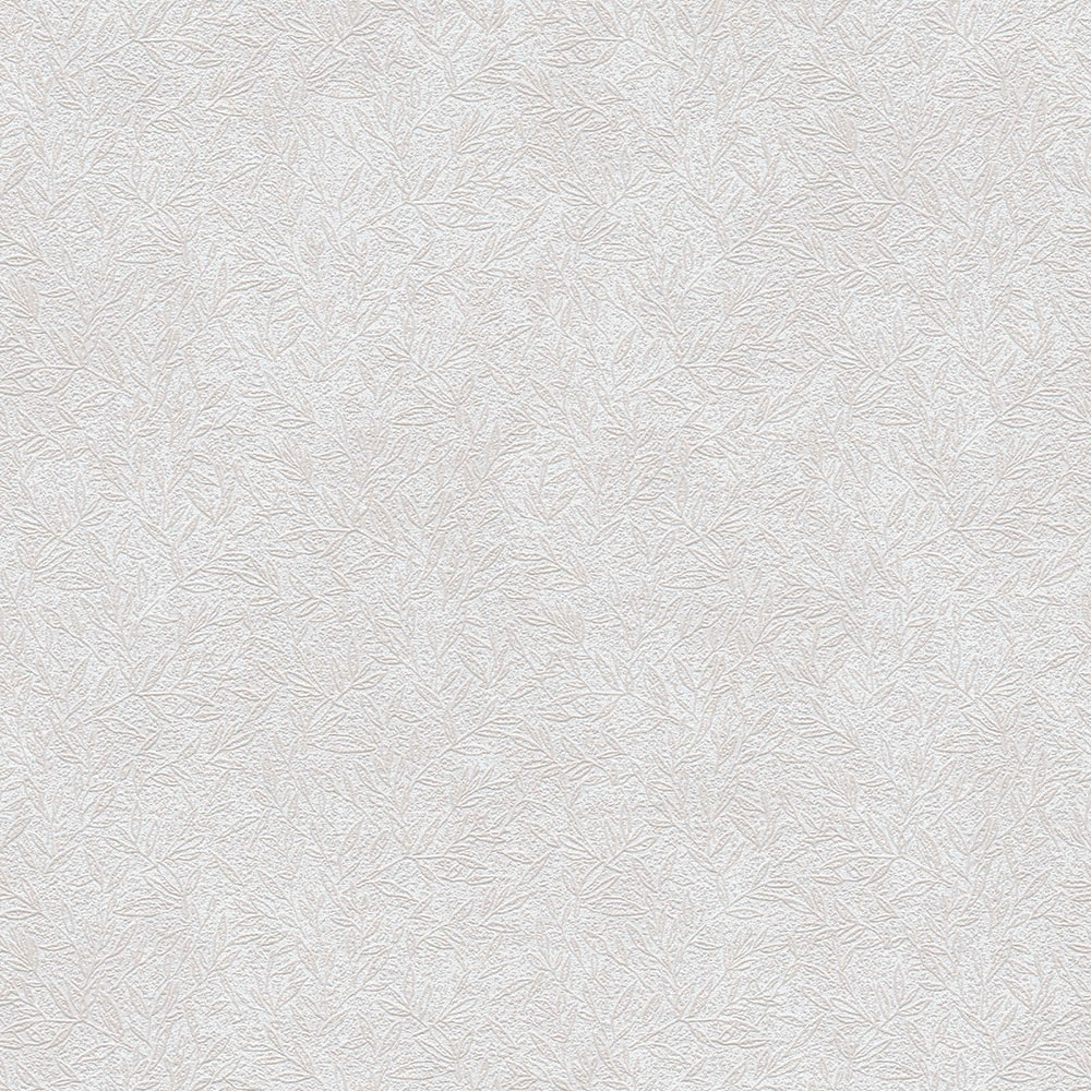 Krémová, jemně plastická vliesová tapeta na zeď, motiv listů.