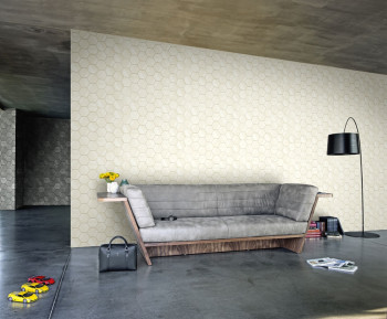 Šíře role 0,7m. S touto kolekcí vnesete do interiéru jedinečnost a eleganci. Luxusní vliesová tapeta s vinylovým povrchem, design a textura uhlíkových vláken, vzor hexagony, efektní střídáni matu a pololesku. Odstíny béžové se stříbrným leskem, spáry pololesk.