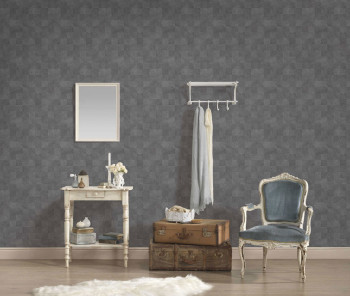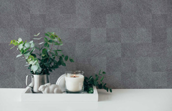 Vliesová geometrická tapeta na zeď, šedá se stříbřitým leskem.