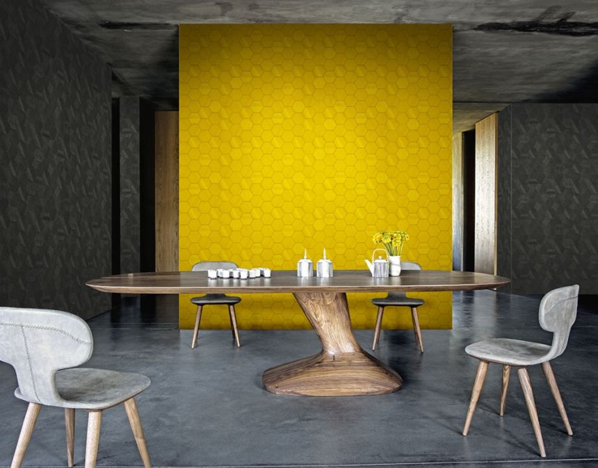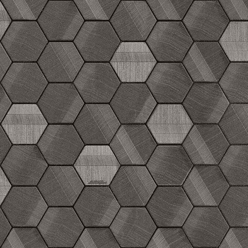 Šíře role 0,7m. S touto kolekcí vnesete do interiéru jedinečnost a eleganci. Luxusní vliesová tapeta s vinylovým povrchem, design a textura uhlíkových vláken, vzor hexagony, efektní střídáni matu a pololesku. Odstíny šedo-stříbrné s jemným kovovým leskem, spáry stříbrné pololesk.