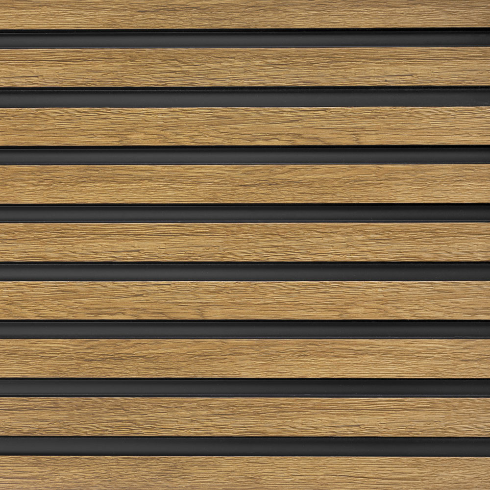Dekorační lamely z odolného materiálu, dekor přírodní dub, vhodné do jakékoli místnosti, jako je koupelna, hala nebo obývací pokoj.