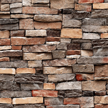 Omyvatelná vinylová tapeta na zeď s dekorem kamene, imitace kamenné zdi; krupičková textura.